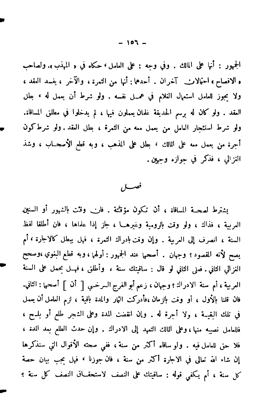 يُشْتَرَطُ لِصِحَّةِ الْمُسَاقَاةِ، أَنْ تَكُونَ مُؤَقَّتَةً. فَإِنْ وَقَّتَ بِالشُّهُورِ أَوِ السِّنِينَ الْعَرَبِيَّةِ، فَذَاكَ، وَلَوْ وَقَّتَ بِالرُّومِيَّةِ وَغَيْرِهَا جَازَ إِذَا عَلِمَاهَا، فَإِنْ أَطْلَقَا لَفْظَ السَّنَةِ، انْصَرَفَ إِلَى الْعَرَبِيَّةِ. وَإِنْ وَقَّتَ بِإِدْرَاكِ الثَّمَرَةِ، فَهَلْ يَبْطُلُ كَالْإِجَارَةِ، أَمْ يَصِحُّ لِأَنَّهُ الْمَقْصُودُ؟ وَجْهَانِ. أَصَحُّهُمَا عِنْدَ الْجُمْهُورِ: أَوَّلُهُمَا، وَبِهِ قَطَعَ الْبَغَوِيُّ، وَصَحَّحَ الْغَزَالِيُّ الثَّانِيَ. فَعَلَى الثَّانِي لَوْ قَالَ: سَاقَيْتُكَ سَنَةً، وَأَطْلَقَ، فَهَلْ يُحْمَلُ عَلَى السَّنَةِ الْعَرَبِيَّةِ، أَمْ سَنَةِ الْإِدْرَاكِ؟ وَجْهَانِ، زَعَمَ أَبُو الْفَرَجِ السَّرَخْسِيُّ [أَنَّ] أَصَحَّهُمَا: الثَّانِي. فَإِنْ قُلْنَا بِالْأَوَّلِ، أَوْ وَقَّتَ بِالزَّمَانِ، فَأُدْرِكَتِ الثِّمَارُ وَالْمُدَّةُ بَاقِيَةٌ، لَزِمَ الْعَامِلَ أَنْ يَعْمَلَ فِي تِلْكَ الْبَقِيَّةِ، وَلَا أُجْرَةَ لَهُ. وَإِنِ انْقَضَتِ الْمُدَّةُ وَعَلَى الشَّجَرِ طَلْعٌ أَوْ بَلَحٌ، فَلِلْعَامِلِ نَصِيبُهُ مِنْهَا، وَعَلَى الْمَالِكِ التَّعَهُّدُ إِلَى الْإِدْرَاكِ. وَإِنْ حَدَثَ الطَّلْعُ بَعْدَ الْمُدَّةِ، فَلَا حَقَّ لِلْعَامِلِ فِيهِ. وَلَوْ سَاقَاهُ أَكْثَرَ مِنْ سَنَةٍ، فَفِي صِحَّتِهِ الْأَقْوَالُ الَّتِي سَنَذْكُرُهَا إِنْ شَاءَ اللَّهُ تَعَالَى فِي الْإِجَارَةِ أَكْثَرَ مِنْ سَنَةٍ، فَإِنْ جَوَّزْنَا، فَهَلْ يَجِبُ بَيَانُ حِصَّةِ كُلِّ سَنَةٍ، أَمْ يَكْفِي قَوْلُهُ: سَاقَيْتُكَ عَلَى النِّصْفِ لِاسْتِحْقَاقِ النِّصْفِ كُلَّ سُنَّةٍ؟