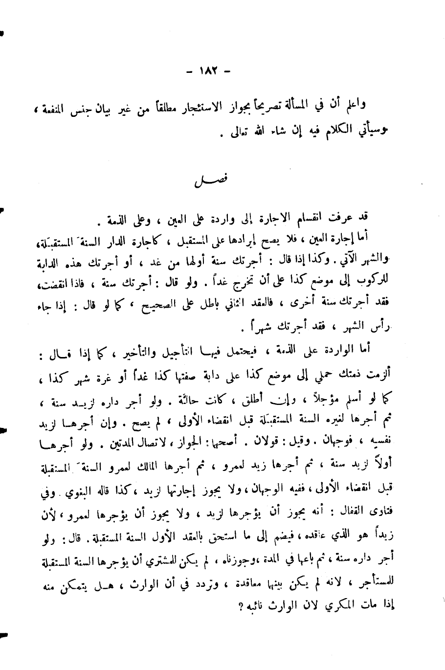 وَاعْلَمْ أَنَّ فِي الْمَسْأَلَةِ تَصْرِيحًا بِجَوَازِ الِاسْتِئْجَارِ مُطْلَقًا مِنْ غَيْرِ بَيَانِ جِنْسِ الْمَنْفَعَةِ، وَسَيَأْتِي الْكَلَامُ فِيهِ إِنْ شَاءَ اللَّهُ تَعَالَى.