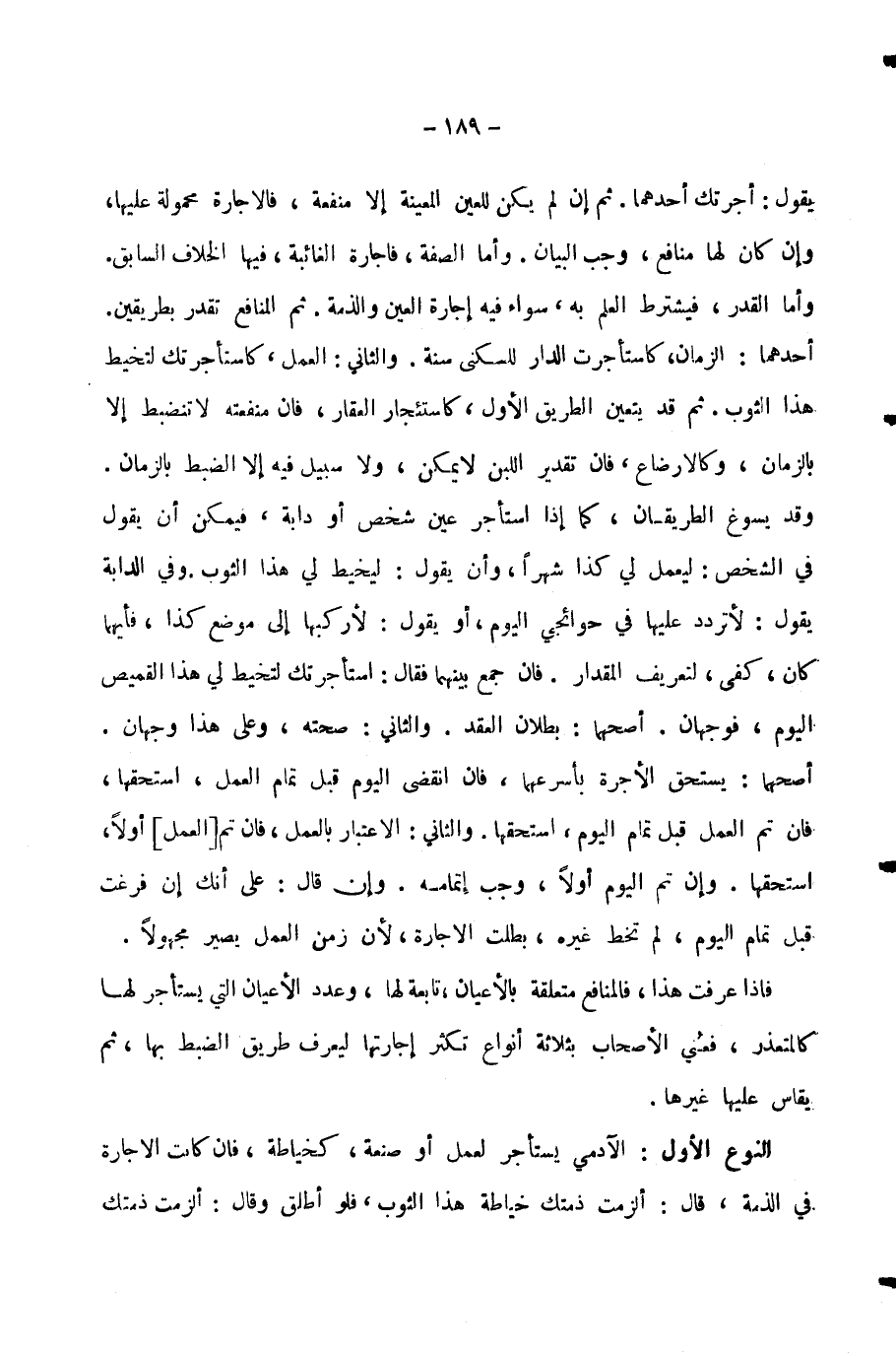 النَّوْعُ الْأَوَّلُ: الْآدَمِيُّ يُسْتَأْجَرُ لِعَمَلٍ أَوْ صَنْعَةٍ، كَخِيَاطَةٍ، فَإِنْ كَانَتِ الْإِجَارَةُ فِي الذِّمَّةِ، قَالَ: أَلْزَمْتُ ذِمَّتَكَ
