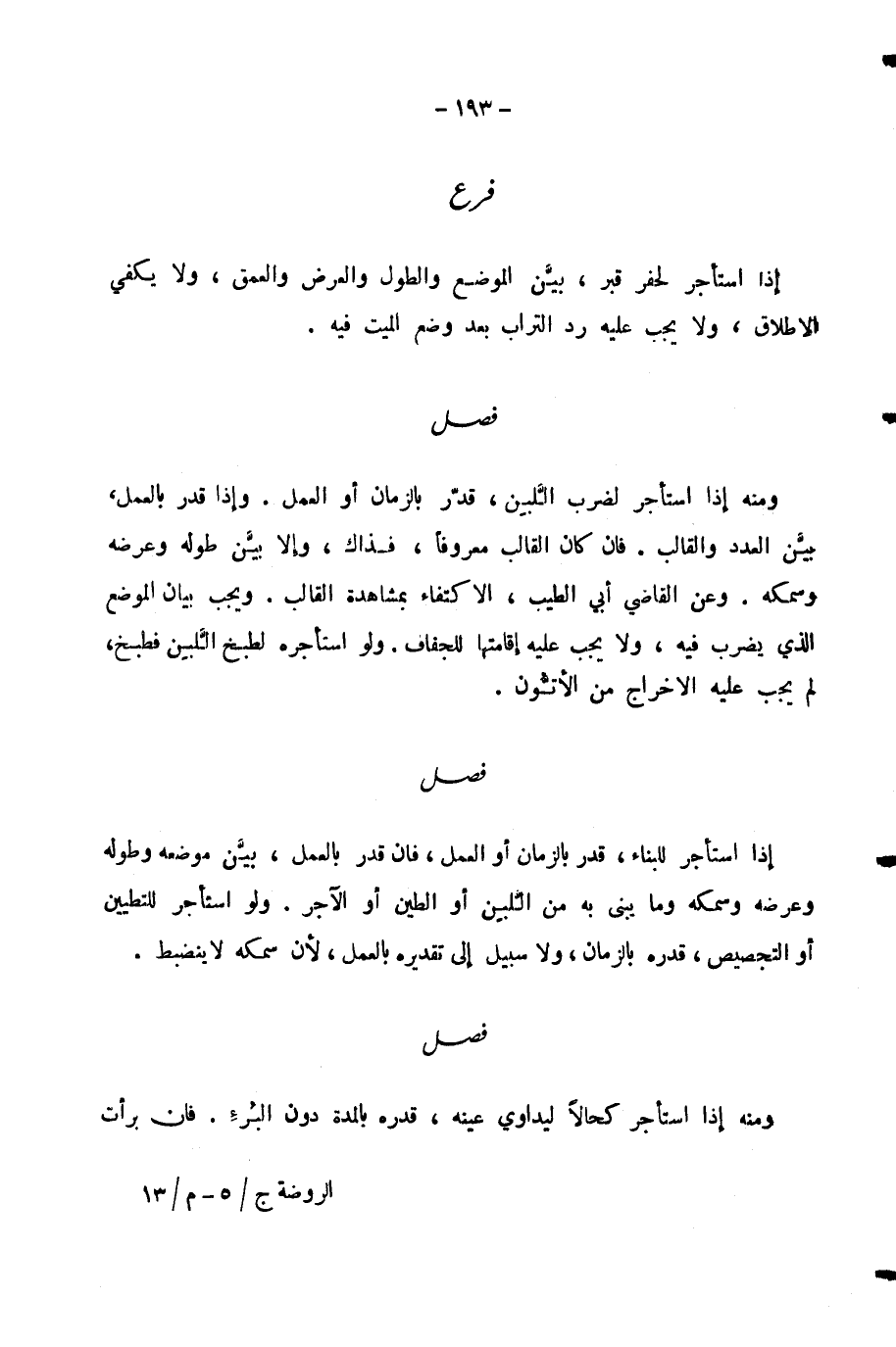 وَمِنْهُ إِذَا اسْتَأْجَرَ لِضَرْبِ اللَّبِنِ، قُدِّرَ بِالزَّمَانِ أَوِ الْعَمَلِ. وَإِذَا قُدِّرَ بِالْعَمَلِ، بَيَّنَ الْعَدَدَ وَالْقَالَبَ. فَإِنْ كَانَ الْقَالَبُ مَعْرُوفًا، فَذَاكَ، وَإِلَّا بَيَّنَ طُولَهُ وَعَرْضَهُ وَسُمْكَهُ. وَعَنِ الْقَاضِي أَبِي الطَّيِّبِ، الِاكْتِفَاءُ بِمُشَاهَدَةِ الْقَالَبِ. وَيَجِبُ بَيَانُ الْمَوْضِعِ الَّذِي يُضْرَبُ فِيهِ، وَلَا يَجِبُ عَلَيْهِ إِقَامَتُهَا لِلْجَفَافِ. وَلَوِ اسْتَأْجَرَهُ لِطَبْخِ اللَّبَنِ فَطَبَخَ، لَمْ يَجِبْ عَلَيْهِ الْإِخْرَاجُ مِنَ الْأَتُّونِ.