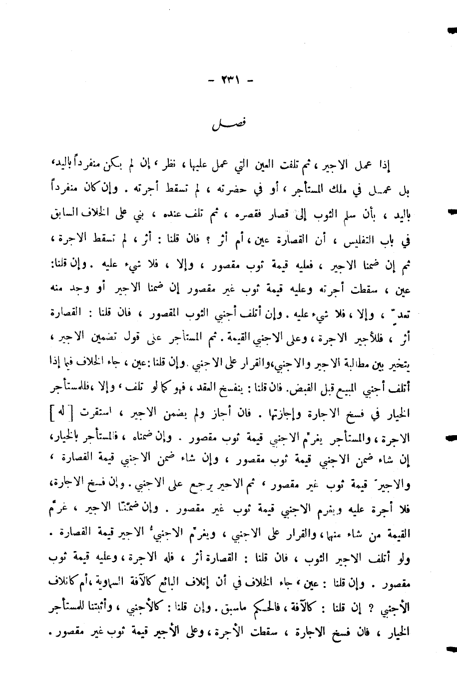إِذَا عَمِلَ الْأَجِيرُ، ثُمَّ تَلِفَتِ الْعَيْنُ الَّتِي عَمِلَ عَلَيْهَا، نُظِرَ، إِنْ لَمْ يَكُنْ مُنْفَرِدًا بِالْيَدِ، بَلْ عَمِلَ فِي مِلْكِ الْمُسْتَأْجِرِ، أَوْ فِي حَضْرَتِهِ، لَمْ تَسْقُطْ أُجْرَتُهُ. وَإِنْ كَانَ مُنْفَرِدًا بِالْيَدِ، بِأَنْ سَلَّمَ الثَّوْبَ إِلَى قَصَّارٍ فَقَصَّرَهُ، ثُمَّ تَلِفَ عِنْدَهُ، بُنِيَ عَلَى الْخِلَافِ السَّابِقِ فِي بَابِ التَّفْلِيسِ، أَنَّ الْقِصَارَةَ عَيْنٌ، أَمْ أَثَرٌ؟ فَإِنْ قُلْنَا: أَثَرٌ، لَمْ تَسْقُطِ الْأُجْرَةُ، ثُمَّ إِنْ ضَمَّنَّا الْأَجِيرَ، فَعَلَيْهِ قِيمَةُ ثَوْبٍ مَقْصُورٍ، وَإِلَّا، فَلَا شَيْءَ عَلَيْهِ. وَإِنْ قُلْنَا: عَيْنٌ، سَقَطَتْ أُجْرَتُهُ وَعَلَيْهِ قِيمَةُ ثَوْبٍ غَيْرِ مَقْصُورٍ إِنْ ضَمَّنَّا الْأَجِيرَ أَوْ وُجِدَ مِنْهُ تَعَدٍّ، وَإِلَّا، فَلَا شَيْءَ عَلَيْهِ.
