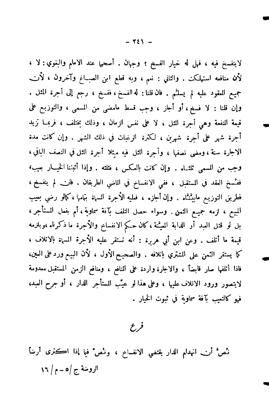 نُصَّ أَنَّ انْهِدَامَ الدَّارِ يَقْتَضِي الِانْفِسَاخَ، وَنُصَّ فِيمَا إِذَا اكْتَرَى أَرْضًا