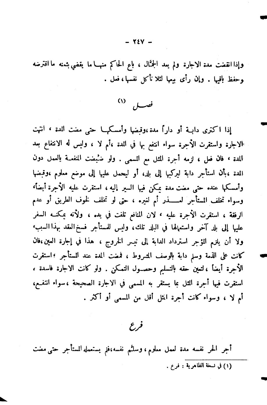 إِذَا اكْتَرَى دَابَّةً أَوْ دَارًا مُدَّةً، وَقَبَضَهَا وَأَمْسَكَهَا حَتَّى مَضَتِ الْمُدَّةُ، انْتَهَتِ الْإِجَارَةُ وَاسْتَقَرَّتِ الْأُجْرَةُ سَوَاءٌ انْتَفَعَ بِهَا فِي الْمُدَّةِ، أَمْ لَا، وَلَيْسَ لَهُ الِانْتِفَاعُ بَعْدَ الْمُدَّةِ، فَإِنْ فَعَلَ، لَزِمَهُ أُجْرَةُ الْمِثْلِ مَعَ الْمُسَمَّى. وَلَوْ ضُبِضَتِ الْمَنْفَعَةُ بِالْعَمَلِ دُونَ الْمُدَّةِ، بِأَنِ اسْتَأْجَرَ دَابَّةً لِيَرْكَبَهَا إِلَى بَلَدٍ، أَوْ لِيَحْمِلَ عَلَيْهَا إِلَى مَوْضِعٍ مَعْلُومٍ، وَقَبَضَهَا وَأَمْسَكَهَا عِنْدَهُ حَتَّى مَضَتْ مُدَّةٌ يُمْكِنُ فِيهَا السَّيْرُ إِلَيْهِ، اسْتَقَرَّتْ عَلَيْهِ الْأُجْرَةُ أَيْضًا، وَسَوَاءٌ تَخَلَّفَ الْمُسْتَأْجِرُ لِعُذْرٍ أَمْ لِغَيْرِهِ، حَتَّى لَوْ تَخَلَّفَ لَخَوْفِ الطَّرِيقِ أَوْ عَدَمِ الرِّفْقَةِ، اسْتَقَرَّتِ الْأُجْرَةُ عَلَيْهِ، لَأَنَّ الْمَنَافِعَ تَلِفَتْ فِي يَدِهِ، وَلِأَنَّهُ يُمْكِنُهُ السَّفَرُ عَلَيْهَا إِلَى بَلَدٍ آخَرَ وَاسْتِعْمَالُهَا فِي الْبَلَدِ تِلْكَ، وَلَيْسَ لِلْمُسْتَأْجِرِ فَسْخُ الْعَقْدِ بِهَذَا السَّبَبِ، وَلَا أَنْ يُلْزِمَ الْمُؤَجِّرَ اسْتِرْدَادَ الدَّابَّةِ إِلَى تَيَسُّرِ الْخُرُوجِ، هَذَا فِي إِجَارَةِ الْعَيْنِ، فَإِنْ كَانَتْ عَلَى الذِّمَّةِ وَسَلَّمَ دَابَّةً بِالْوَصْفِ الْمَشْرُوطِ، فَمَضَتِ الْمُدَّةُ عِنْدَ الْمُسْتَأْجِرِ، اسْتَقَرَّتِ الْأُجْرَةُ أَيْضًا، لِتَعَيُّنِ حَقِّهِ بِالتَّسْلِيمِ وَحُصُولِ التَّمَكُّنِ. وَلَوْ كَانَتِ الْإِجَارَةُ فَاسِدَةً، اسْتَقَرَّتْ فِيهَا أُجْرَةُ الْمِثْلِ بِمَا يَسْتَقِرُّ بِهِ الْمُسَمَّى فِي الْإِجَارَةِ الصَّحِيحَةِ، سَوَاءٌ انْتَفَعَ، أَمْ لَا، وَسَوَاءٌ كَانَتْ أُجْرَةُ الْمِثْلِ أَقَلَّ مِنَ الْمُسَمَّى أَوْ أَكَثُرَ.