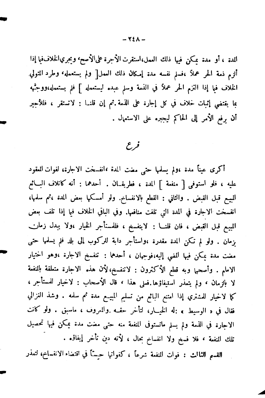 الْقِسْمُ الثَّالِثُ: فَوَاتُ الْمَنْفَعَةِ شَرْعًا، كَفَوَاتِهَا حِسًّا فِي اقْتِضَاءِ الِانْفِسَاخِ، لِتَعَذُّرِ