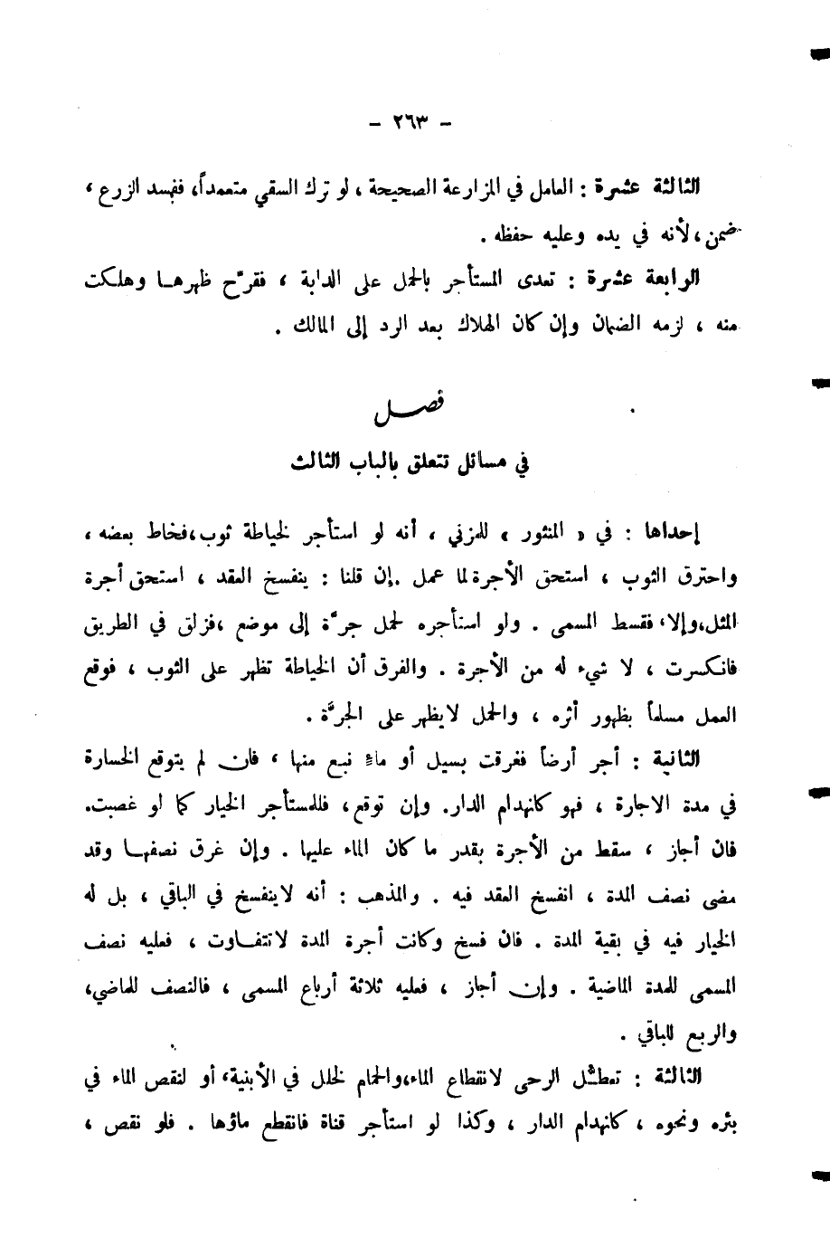 فِي مَسَائِلَ تَتَعَلَّقُ بِالْبَابِ الثَّالِثِ