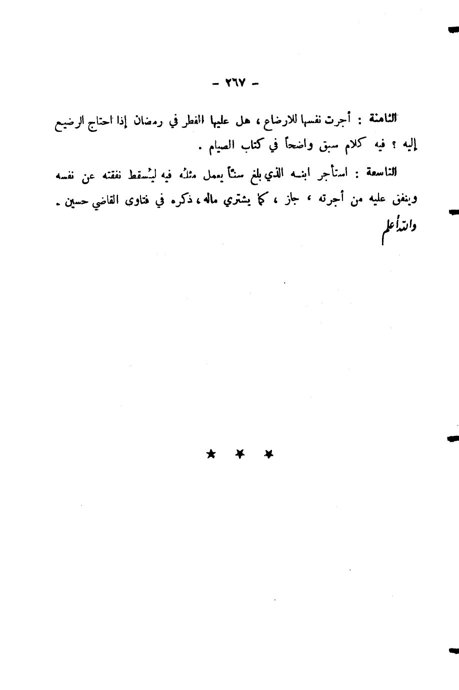 الثَّامِنَةُ: أَجَّرَتْ نَفْسَهَا لِلْإِرْضَاعِ، هَلْ عَلَيْهَا الْفِطْرُ فِي رَمَضَانَ إِذَا احْتَاجَ الرَّضِيعُ إِلَيْهِ؟ فِيهِ كَلَامٌ سَبَقَ وَاضِحًا فِي كِتَابِ الصِّيَامِ.