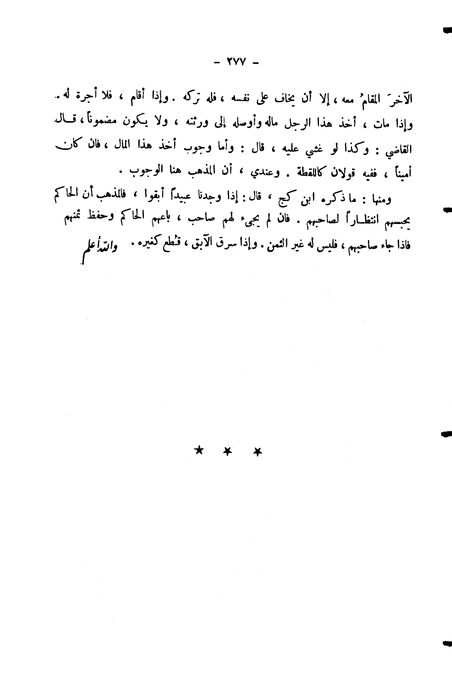وَعِنْدِي، أَنَّ الْمَذْهَبَ هُنَا الْوُجُوبُ. وَمِنْهَا: مَا ذَكَرَهُ ابْنُ كَجٍّ، قَالَ: إِذَا وَجَدْنَا عَبِيدًا أَبَقُوا، فَالْمَذْهَبُ أَنَّ الْحَاكِمَ يَحْبِسُهُمُ انْتِظَارًا لِصَاحِبِهِمْ. فَإِنْ لَمْ يَجِئْ لَهُمْ صَاحِبٌ، بَاعَهُمُ الْحَاكِمُ وَحَفَظَ ثَمَنَهُمْ. فَإِذَا جَاءَ صَاحِبُهُمْ، فَلَيْسَ لَهُ غَيْرُ الثَّمَنِ. وَإِذَا سَرَقَ الْآبِقُ، قُطِعَ كَغَيْرِهِ. - وَاللَّهُ أَعْلَمُ.