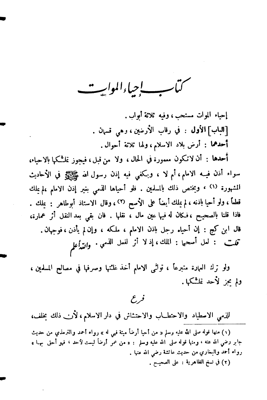 كِتَابُ إِحْيَاءِ الْمَوَاتِ
