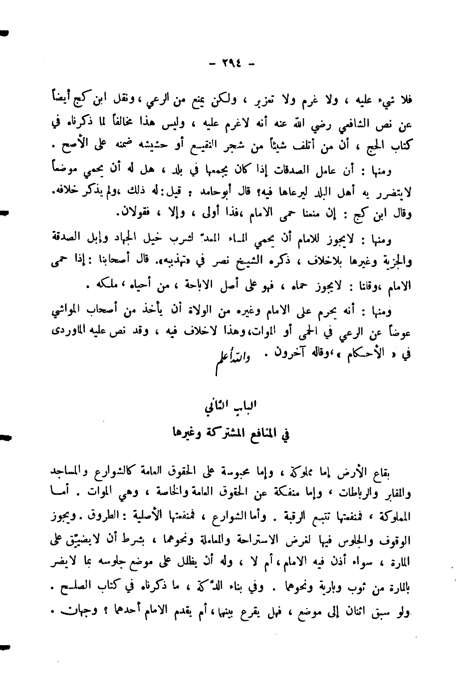 الْبَابُ الثَّانِي فِي الْمَنَافِعِ الْمُشْتَرَكَةِ وَغَيْرِهَا