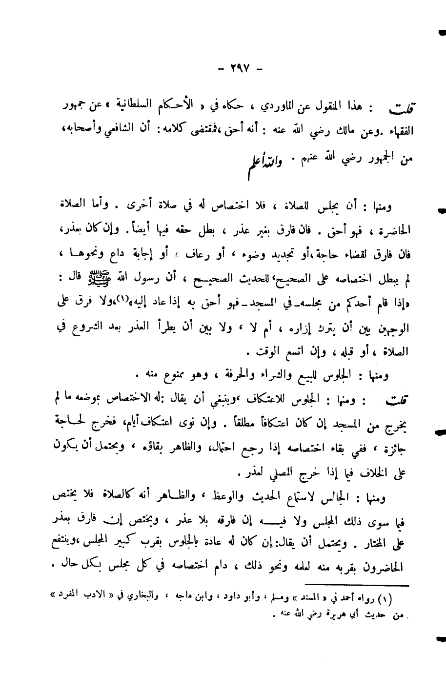 قُلْتُ: هَذَا الْمَنْقُولُ عَنِ الْمَاوَرْدِيِّ، حَكَاهُ فِي الْأَحْكَامِ السُّلْطَانِيَّةِ عَنْ جُمْهُورِ الْفُقَهَاءِ. وَعَنْ مَالِكٍ - رَضِيَ اللَّهُ عَنْهُ -: أَنَّهُ أَحَقُّ، فَمُقْتَضَى كَلَامِهِ: أَنَّ الشَّافِعِيَّ وَأَصْحَابَهُ، مِنَ الْجُمْهُورِ - رَضِيَ اللَّهُ عَنْهُمْ -. وَاللَّهُ أَعْلَمُ.