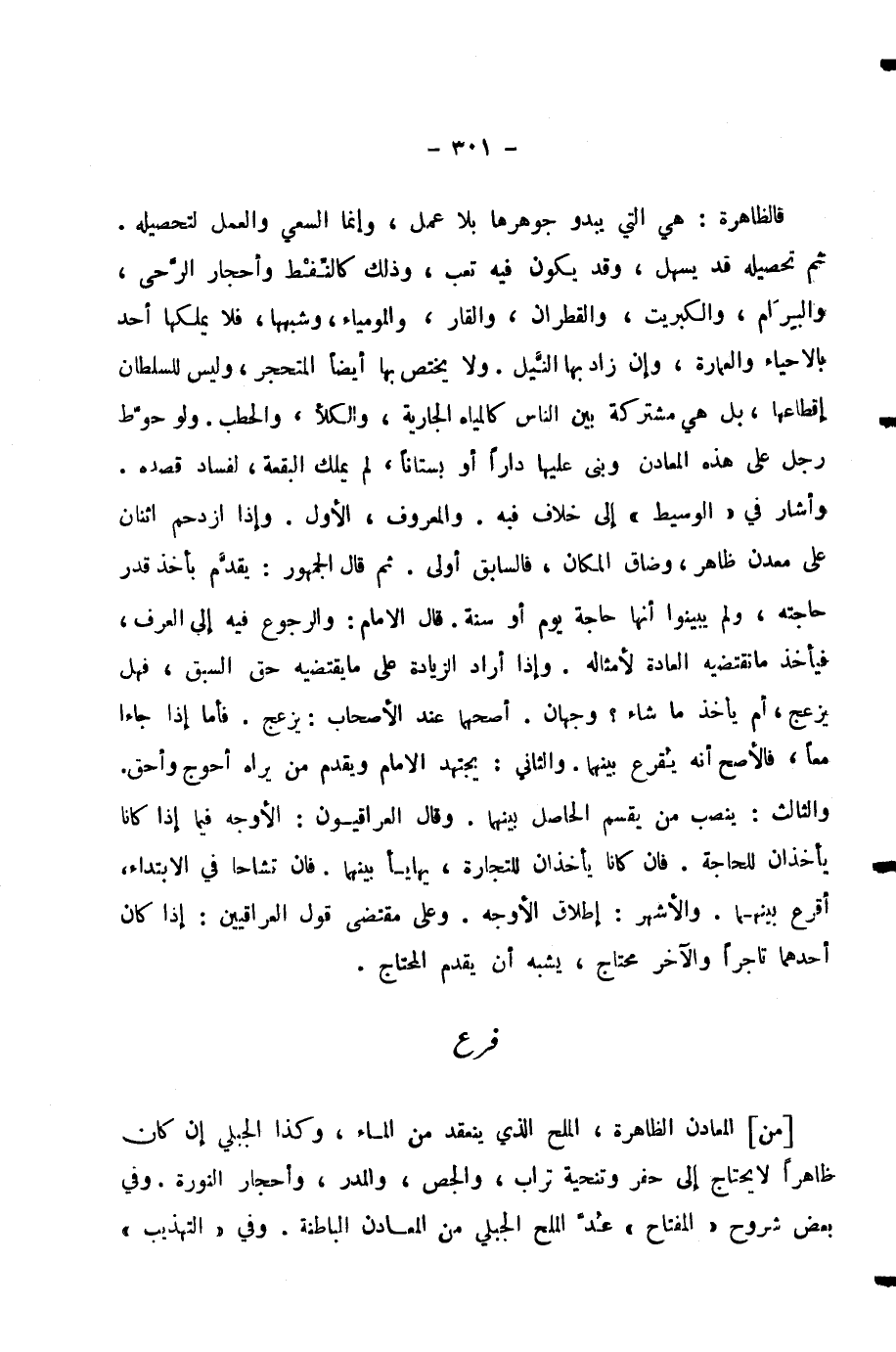 فَرْعٌ [مِنَ] الْمَعَادِنِ الظَّاهِرَةِ، الْمِلْحُ الَّذِي يَنْعَقِدُ مِنَ الْمَاءِ، وَكَذَا الْجَبَلِيُّ إِنْ كَانَ ظَاهِرًا لَا يَحْتَاجُ إِلَى حَفْرٍ وَتَنْحِيَةِ تُرَابٍ، وَالْجِصُّ، وَالْمَدَرُ، وَأَحْجَارُ النَّوْرَةِ. وَفِي بَعْضِ شُرُوحِ «الْمِفْتَاحِ» عُدَّ الْمِلْحُ الْجَبَلِيُّ مِنَ الْمَعَادِنِ الْبَاطِنَةِ. وَفِي «التَّهْذِيبِ»