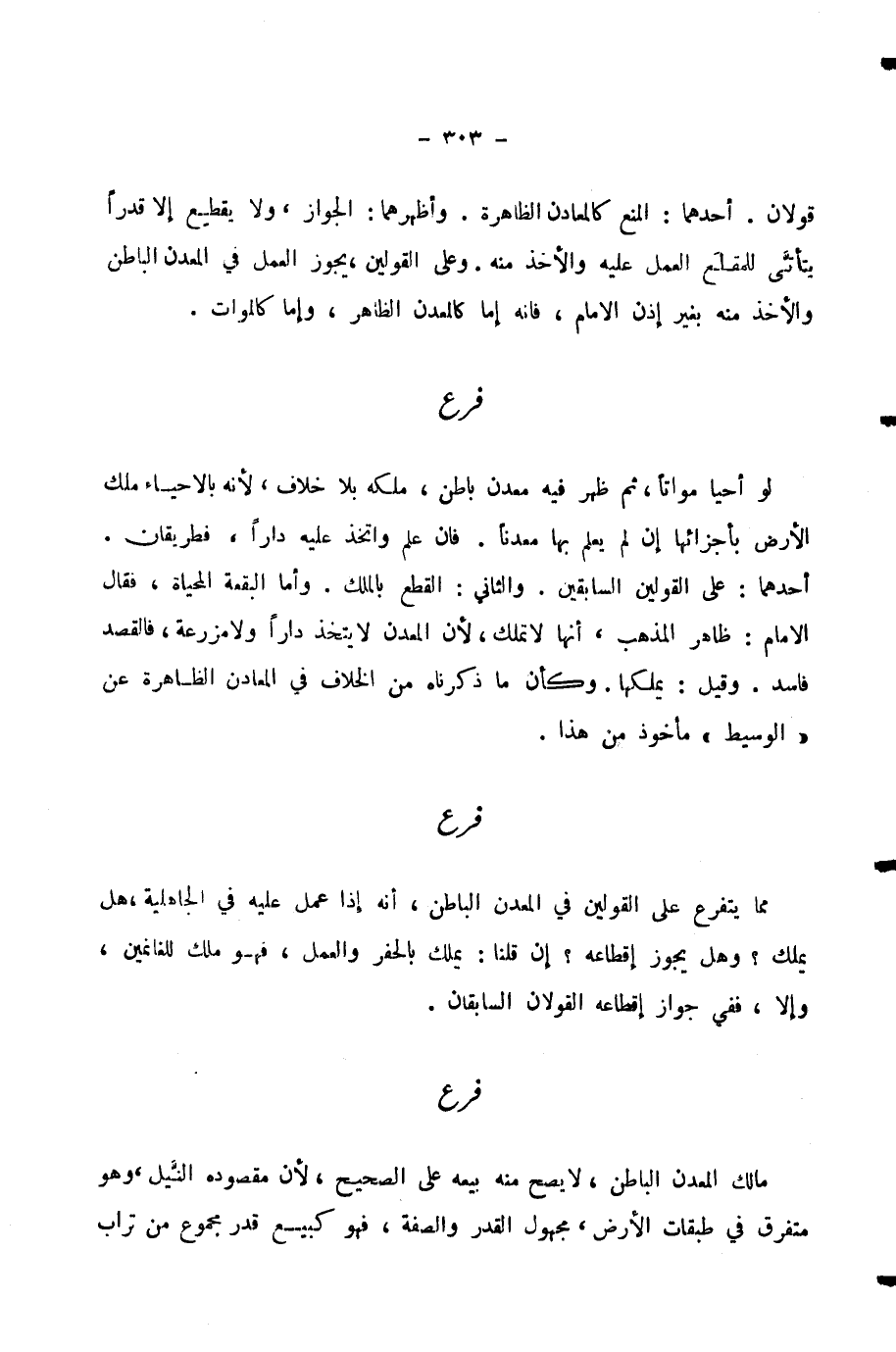 مِمَّا يَتَفَرْعٌ عَلَى الْقَوْلَيْنِ فِي الْمَعْدِنِ الْبَاطِنِ، أَنَّهُ إِذَا عَمِلَ عَلَيْهِ فِي الْجَاهِلِيَّةِ، هَلْ يُمَلَّكُ؟ وَهَلْ يَجُوزُ إِقْطَاعُهُ؟ إِنْ قُلْنَا: يُمَلَّكُ بِالْحَفْرِ وَالْعَمَلِ، فَهُوَ مِلْكٌ لِلْغَانِمِينَ، وَإِلَّا، فَفِي جَوَازِ إِقْطَاعِهِ الْقَوْلَانِ السَّابِقَانِ.