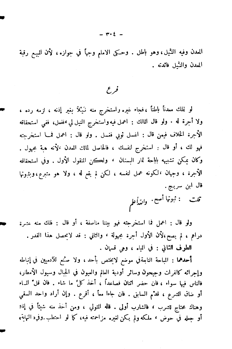 الطَّرَفُ الثَّانِي: فِي الْمِيَاهِ، وَهِيَ قِسْمَانِ: