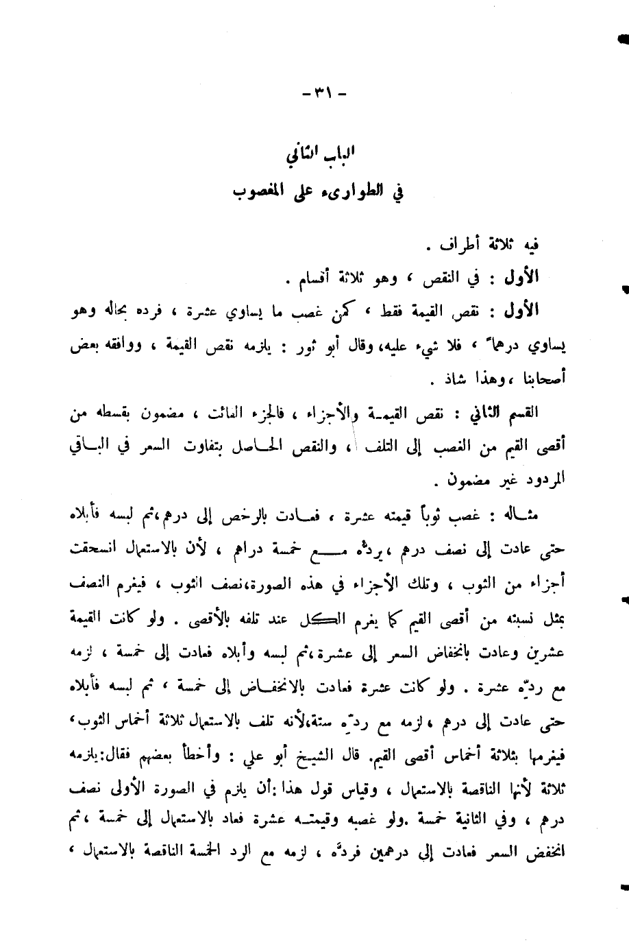 الْبَابُ الثَّانِي فِي الطَّوَارِئِ عَلَى الْمَغْصُوبِ