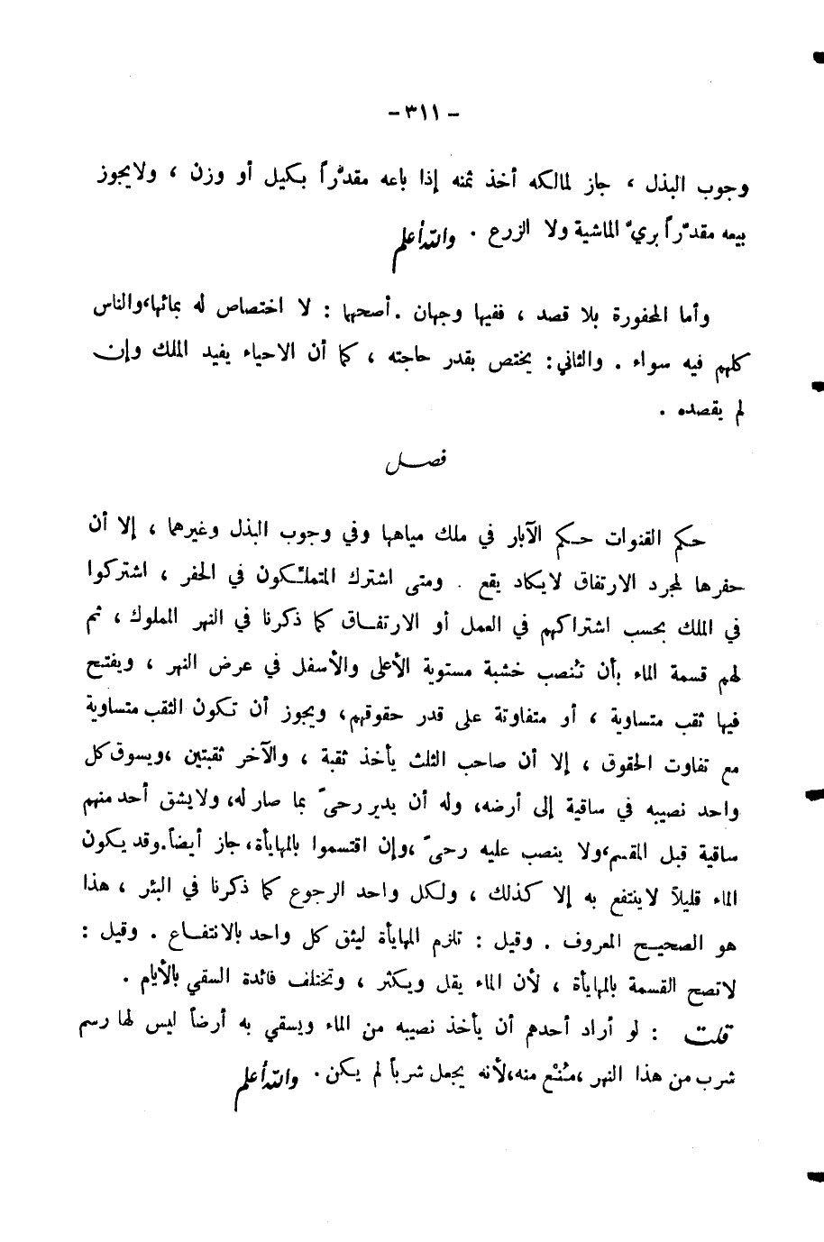 وُجُوبِ الْبَذْلِ، جَازَ لِمَالِكِهِ أَخْذُ ثَمَنِهِ إِذَا بَاعَهُ مُقَدَّرًا بِكَيْلٍ أَوْ وَزْنٍ، وَلَا يَجُوزُ، بَيْعُهُ مُقَدَّرًا بِرَيِّ الْمَاشِيَةِ وَلَا الزَّرْعِ. وَاللَّهُ أَعْلَمُ.