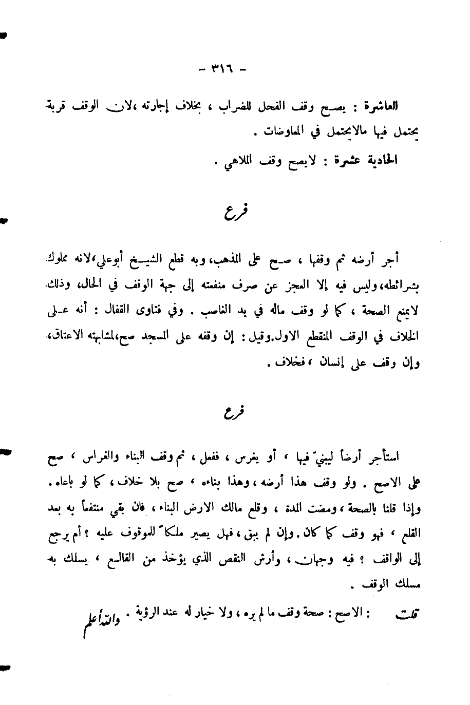 الْعَاشِرَةُ: يَصِحُّ وَقْفُ الْفَحْلِ لِلضِّرَابِ، بِخِلَافِ إِجَارَتِهِ، لِأَنَّ الْوَقْفَ قُرْبَةٌ يُحْتَمَلُ فِيهَا مَا لَا يُحْتَمَلُ فِي الْمُعَاوَضَاتِ. الْحَادِيَةَ عَشْرَةَ: لَا يَصِحُّ وَقْفُ الْمَلَاهِي.