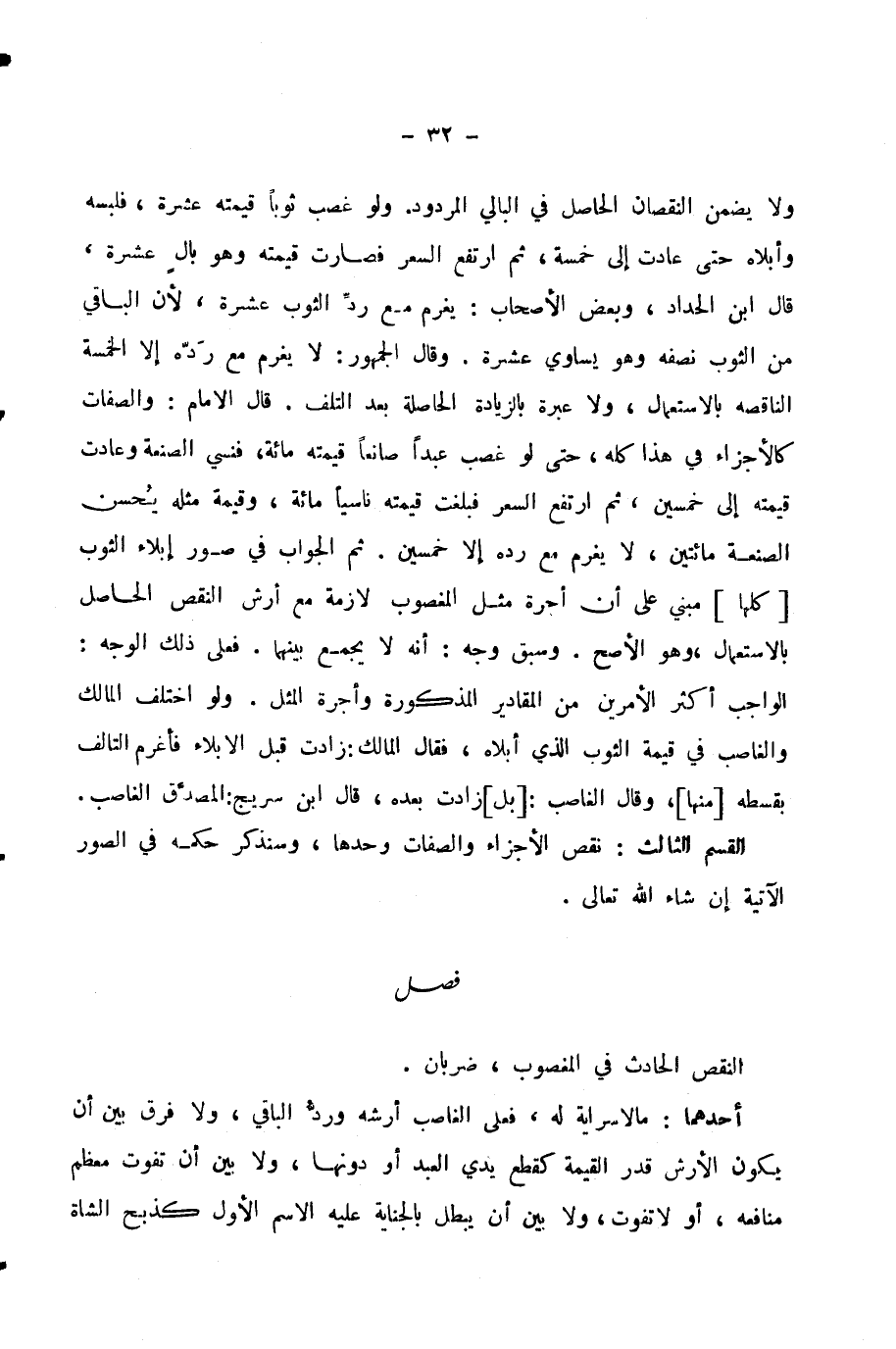 الْقِسْمُ الثَّالِثُ: نَقْصُ الْأَجْزَاءِ وَالصِّفَاتِ وَحْدَهَا، وَسَنَذْكُرُ حُكْمَهُ فِي الصُّوَرِ الْآتِيَةِ إِنْ شَاءَ اللَّهُ تَعَالَى.