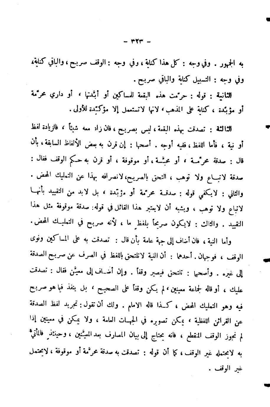 بِهِ الْجُمْهُورُ. وَفِي وَجْهٍ: كُلُّ هَذَا كِنَايَةٌ، وَفِي وَجْهٍ: الْوَقْفُ صَرِيحٌ، وَالْبَاقِي كِنَايَةٌ، وَفِي وَجْهٍ: التَّسْبِيلُ كِنَايَةٌ وَالْبَاقِي صَرِيحٌ.