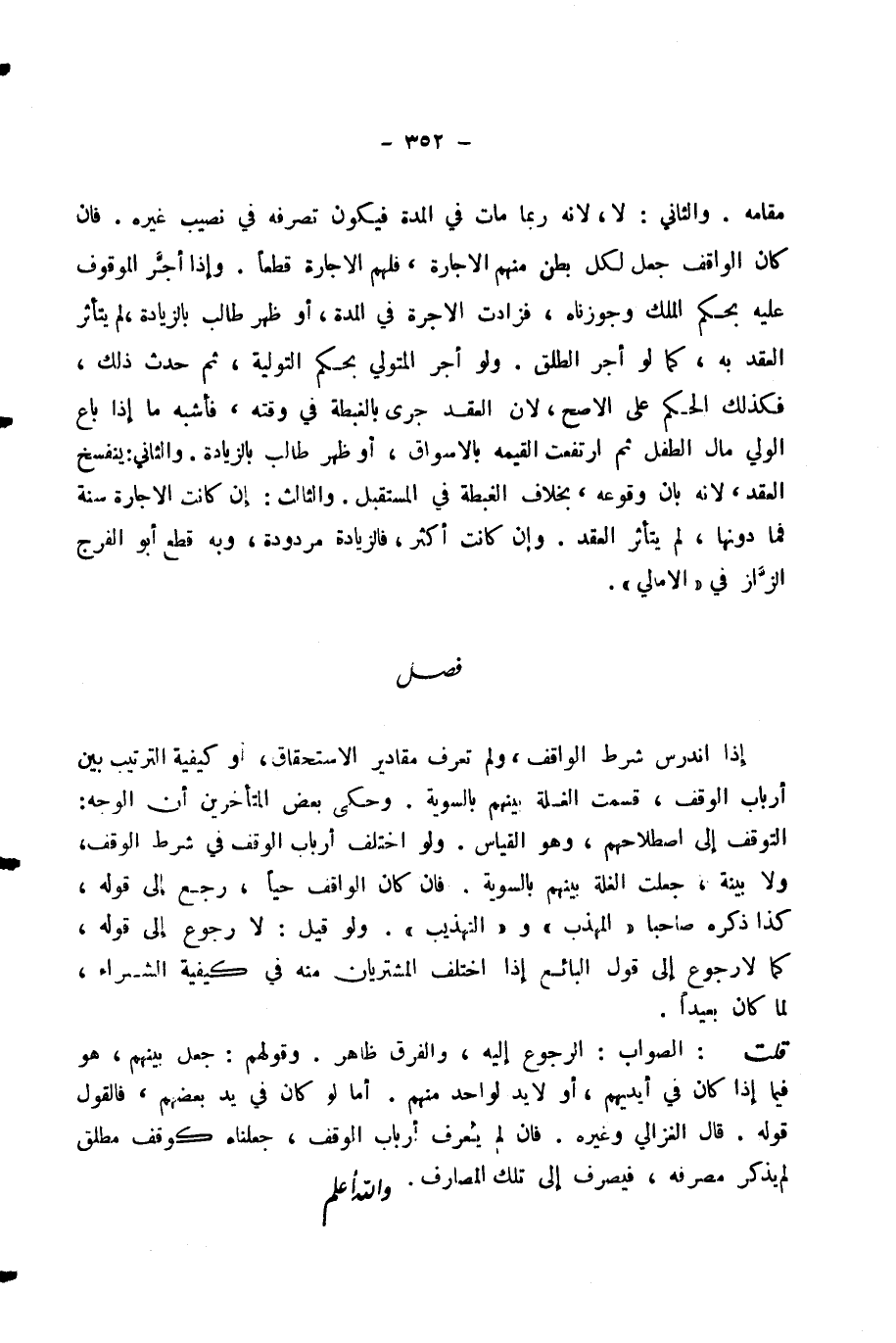 قُلْتُ: الصَّوَابُ: الرُّجُوعُ إِلَيْهِ، وَالْفَرْقُ ظَاهِرٌ، وَقَوْلُهُمْ: جُعِلَ بَيْنَهُمْ، هُوَ فِيمَا إِذَا كَانَ فِي أَيْدِيهِمْ، أَوْ لَا يَدَ لِوَاحِدٍ مِنْهُمْ. أَمَّا لَوْ كَانَ فِي يَدِ بَعْضِهِمْ، فَالْقَوْلُ قَوْلُهُ، قَالَ الْغَزَالِيُّ، وَغَيْرُهُ، فَإِنْ لَمْ يَعْرِفْ أَرْبَابُ الْوَقْفِ جَعَلْنَاهُ كَوَقْفٍ مُطْلَقٍ لَمْ يُذْكَرْ مَصْرِفُهُ فَيُصْرَفَ إِلَى تِلْكَ الْمَصَارِفِ. - وَاللَّهُ أَعْلَمُ -.