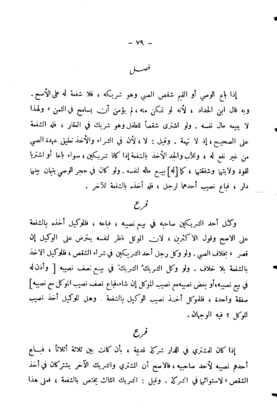 إِذَا بَاعَ الْوَصِيُّ أَوِ الْقَيِّمُ شِقْصَ الصَّبِيِّ وَهُوَ شَرِيكُهُ، فَلَا شُفْعَةَ لَهُ عَلَى الْأَصَحِّ. وَبِهِ قَالَ ابْنُ الْحَدَّادِ، لِأَنَّهُ لَوْ تَمَكَّنَ مِنْهُ لَمْ يُؤْمَنْ أَنْ يُسَامِحَ فِي الثَّمَنِ، وَلِهَذَا لَا يَبِيعُهُ مَالَ نَفْسِهِ. وَلَوِ اشْتَرَى شِقْصًا لِلطِّفْلِ وَهُوَ شَرِيكٌ فِي الْعَقَارِ فَلَهُ الشُّفْعَةُ عَلَى الصَّحِيحِ، إِذْ لَا تُهْمَةَ. وَقِيلَ: لَا، لِأَنَّ فِي الشِّرَاءِ وَالْأَخْذِ تَعْلِيقَ عُهْدَةِ الصَّبِيِّ مِنْ غَيْرِ نَفْعٍ لَهُ، وَلِلْأَبِ وَالْجَدِّ الْأَخْذُ بِالشُّفْعَةِ إِذَا كَانَا شَرِيكَيْنِ، سَوَاءٌ بَاعَا أَوِ اشْتَرَيَا لِقُوَّةِ وِلَايَتِهِمَا وَشُفْعَتِهِمَا، كَمَا [لَهُ] بَيْعُ مَالِهِ لِنَفْسِهِ. وَلَوْ كَانَ فِي حِجْرِ الْوَصِيِّ يَتِيمَانِ بَيْنَهُمَا دَارٌ، فَبَاعَ نَصِيبَ أَحَدِهِمَا لِرَجُلٍ، فَلَهُ أَخْذُهُ بِالشُّفْعَةِ لِلْآخَرِ.