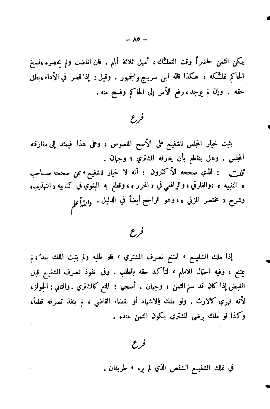 قُلْتُ: الَّذِي صَحَّحَهُ الْأَكْثَرُونَ: أَنَّهُ لَا خِيَارَ لِلشَّفِيعِ، مِمَّنْ صَحَّحَهُ صَاحِبُ " التَّنْبِيهِ "، وَالْفَارِقِيُّ، وَالرَّافِعِيُّ فِي الْمُحَرَّرِ، وَقَطَعَ بِهِ الْبَغَوِيُّ فِي كِتَابَيْهِ " التَّهْذِيبِ " وَشَرْحِ " مُخْتَصَرِ الْمُزَنِيِّ، وَهُوَ الرَّاجِحُ أَيْضًا فِي الدَّلِيلِ. وَاللَّهُ أَعْلَمُ.
