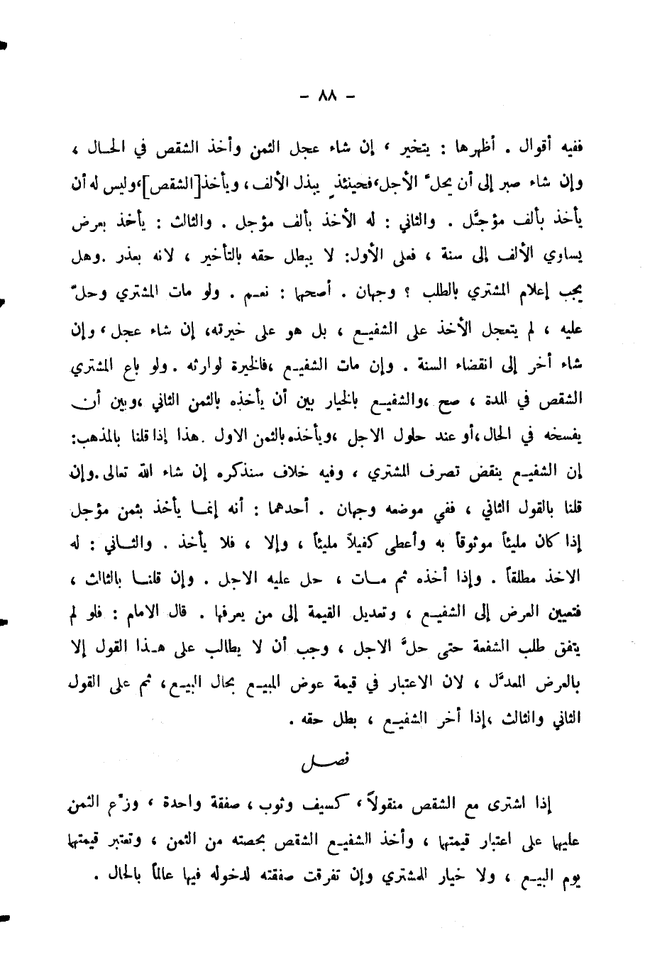 هَذَا إِذَا قُلْنَا بِالْمَذْهَبِ: إِنَّ الشَّفِيعَ يَنْقُضُ تَصَرُّفَ الْمُشْتَرِي، وَفِيهِ خِلَافٌ سَنَذْكُرُهُ إِنْ شَاءَ اللَّهُ تَعَالَى. وَإِنْ قُلْنَا بِالْقَوْلِ الثَّانِي، فَفِي مَوْضِعِهِ وَجْهَانِ. أَحَدُهُمَا: أَنَّهُ إِنَّمَا يَأْخُذُ بِثَمَنٍ مُؤَجَّلٍ إِذَا كَانَ مَلِيئًا مَوْثُوقًا بِهِ وَأَعْطَى كَفِيلًا مَلِيئًا، وَإِلَّا فَلَا يَأْخُذُ. وَالثَّانِي: لَهُ الْأَخْذُ مُطْلَقًا. وَإِذَا أَخَذَهُ ثُمَّ مَاتَ حَلَّ عَلَيْهِ الْأَجَلُ. وَإِنْ قُلْنَا بِالثَّالِثِ، فَتَعْيِينُ الْعَرَضِ إِلَى الشَّفِيعِ، وَتَعْدِيلُ الْقِيمَةِ إِلَى مَنْ يَعْرِفُهَا. قَالَ الْإِمَامُ: فَلَوْ لَمْ يَتَّفِقْ طَلَبُ الشُّفْعَةِ حَتَّى حَلَّ الْأَجَلُ وَجَبَ أَنْ لَا يُطَالِبَ عَلَى هَذَا الْقَوْلِ إِلَّا بِالْعَرَضِ الْمُعَدَّلِ، لِأَنَّ الِاعْتِبَارَ فِي قِيمَةِ عِوَضِ الْمَبِيعِ بِحَالِ الْبَيْعِ، ثُمَّ عَلَى الْقَوْلِ الثَّانِي وَالثَّالِثِ إِذَا أَخَّرَ الشَّفِيعُ بَطَلَ حَقُّهُ.