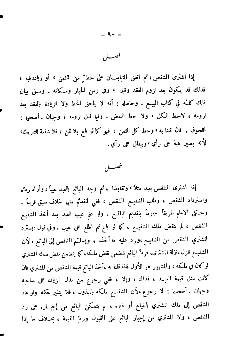 إِذَا اشْتَرَى الشِّقْصَ بِعَبْدٍ مَثَلًا وَتَقَابَضَا، ثُمَّ وَجَدَ الْبَائِعُ بِالْعَبْدِ عَيْبًا، وَأَرَادَ رَدَّهُ وَاسْتِرْدَادَ الشِّقْصِ، وَطَلَبَ الشَّفِيعُ الشِّقْصَ، فَفِي الْمُقَدَّمِ مِنْهُمَا خِلَافٌ سَبَقَ قَرِيبًا. وَحَكَى الْإِمَامُ طَرِيقًا جَازِمًا بِتَقْدِيمِ الْبَائِعِ. وَلَوْ عَلِمَ عَيْبَ الْعَبْدِ بَعْدَ أَخْذِ الشَّفِيعِ الشِّقْصَ لَمْ يُنْقَضْ مِلْكُ الشَّفِيعِ، كَمَا لَوْ بَاعَ ثُمَّ اطَّلَعَ عَلَى عَيْبٍ. وَفِي قَوْلٍ: يَسْتَرِدُّ الْمُشْتَرِي الشِّقْصَ مِنَ الشَّفِيعِ، وَيَرُدُّ عَلَيْهِ مَا أَخَذَهُ، وَيُسَلِّمُ الشِّقْصَ إِلَى الْبَائِعِ، لِأَنَّ الشَّفِيعَ نَازِلٌ مَنْزِلَةَ الْمُشْتَرِي، فَرَدُّ الْبَائِعِ يَتَضَمَّنُ نَقْضَ مِلْكِهِ كَمَا يَتَضَمَّنُ نَقْضَ مِلْكِ الْمُشْتَرِي لَوْ كَانَ فِي مِلْكِهِ، وَالْمَشْهُورُ هُوَ الْأَوَّلُ. فَإِذَا قُلْنَا بِهِ، أَخَذَ الْبَائِعُ قِيمَةَ الشِّقْصِ مِنَ الْمُشْتَرِي. فَإِنْ كَانَتْ مِثْلَ قِيمَةِ الْعَبْدِ فَذَاكَ، وَإِلَّا فَفِي رُجُوعِ مَنْ بَذَلَ الزِّيَادَةَ عَلَى صَاحِبِهِ وَجْهَانِ. أَصَحُّهُمَا: لَا رُجُوعَ، لِأَنَّ الشَّفِيعَ مَلَكَهُ بِالْمَبْذُولِ، فَلَا يَتَغَيَّرُ حُكْمُهُ. وَلَوْ عَادَ الشِّقْصُ إِلَى مِلْكِ الْمُشْتَرِي بِابْتِيَاعٍ أَوْ غَيْرِهِ، لَمْ يَتَمَكَّنِ الْبَائِعُ مِنْ إِجْبَارِهِ عَلَى رَدِّ الشِّقْصِ، وَلَا الْمُشْتَرِي مِنْ إِجْبَارِ الْبَائِعِ عَلَى الْقَبُولِ وَرَدِّ الْقِيمَةِ، بِخِلَافِ مَا إِذَا
