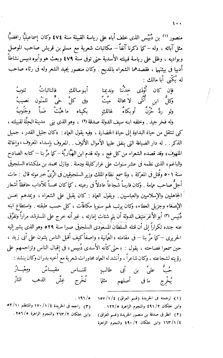 (¬2) انظر فى صدقة بن منصور الخريدة (قسم العراق) 4/ 1/163 وابن خلكان 2/ 490 والنجوم الزاهرة 5/ 196.