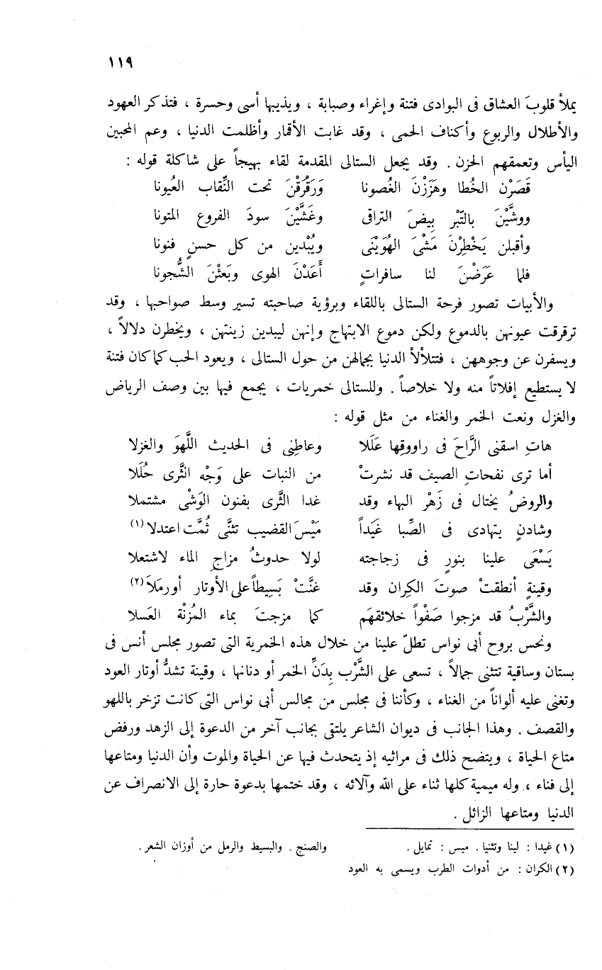 قصرن الخطا وهززن الغصونا … ورقرقن تحت النّقاب العيونا