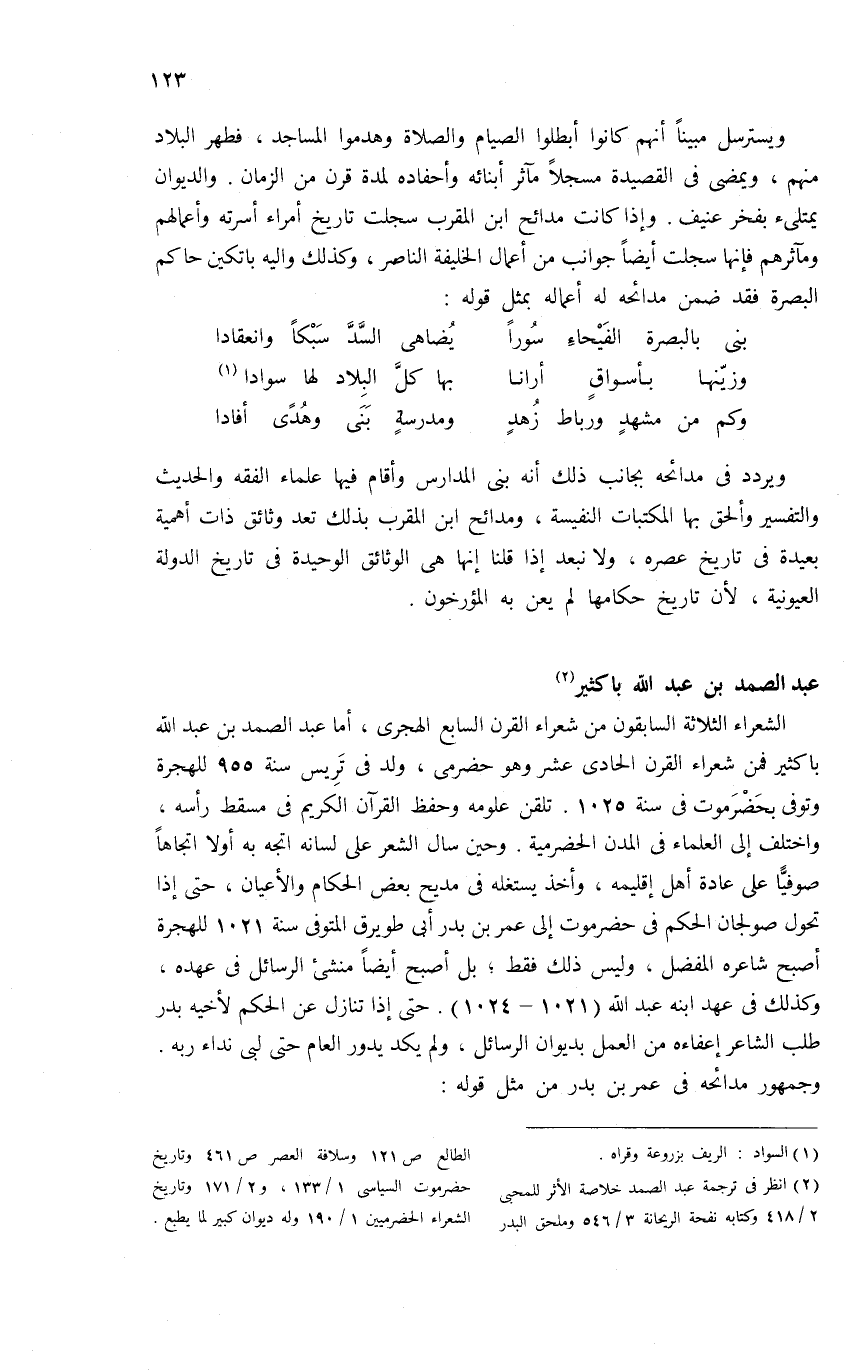 (¬2) انظر فى ترجمة عبد الصمد خلاصة الأثر للمحبى 2/ 418 وكتابه نفحة الريحانة 3/ 546 وملحق البدر الطالع ص 121 وسلافة العصر ص 461 وتاريخ حضرموت السياسى 1/ 133، و 2/ 171 وتاريخ الشعراء الحضرميين 1/ 190 وله ديوان كبير لما يطبع.