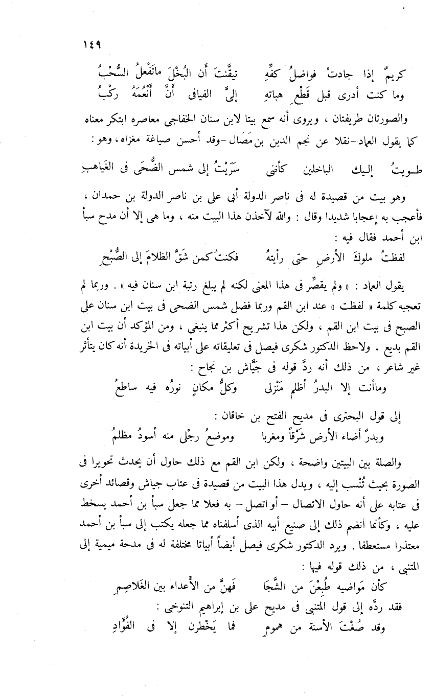 فقد ردّه إلى قول المتنبى فى مديح على بن إبراهيم التنوخى: