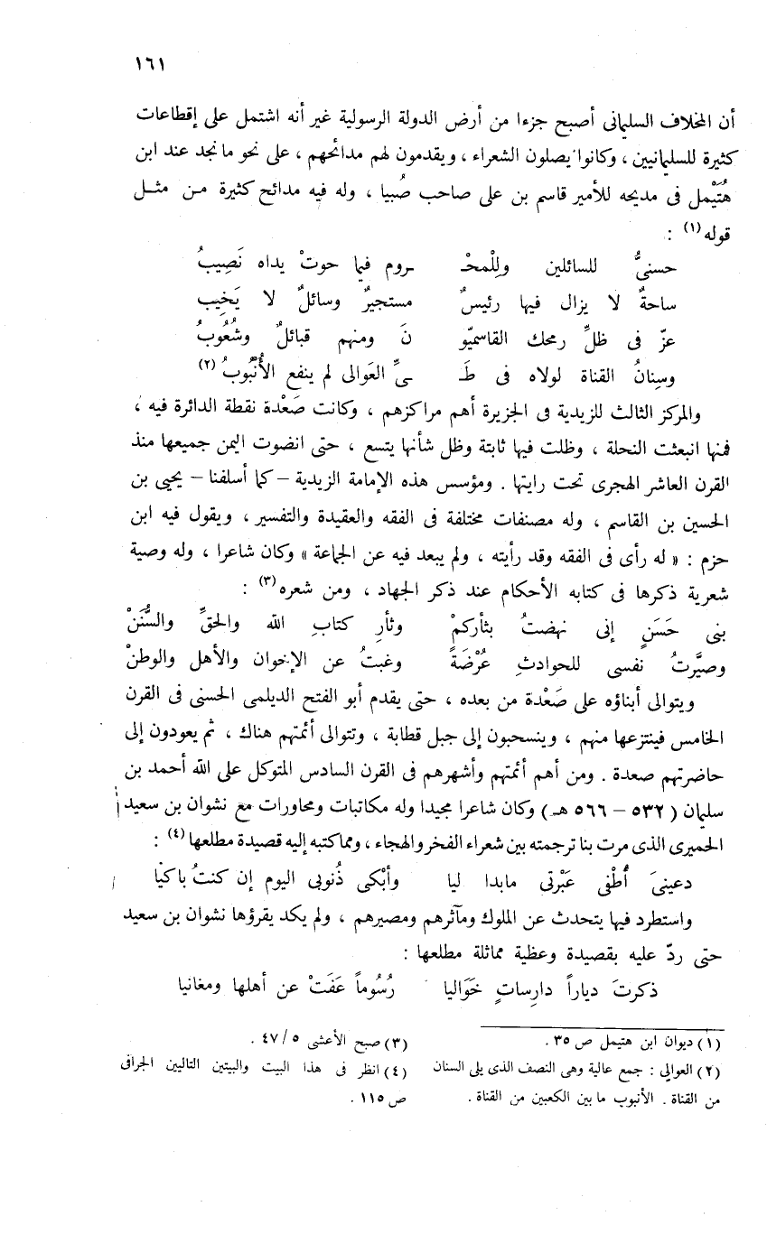 أن المخلاف السليمانى أصبح جزءا من أرض الدولة الرسولية غير أنه اشتمل على إقطاعات كثيرة للسليمانيين، وكانوا يصلون الشعراء، ويقدمون لهم مدائحهم، على نحو ما نجد عند ابن هتيمل فى مديحه للأمير قاسم بن على صاحب صبيا، وله فيه مدائح كثيرة من مثل قوله (¬1):
