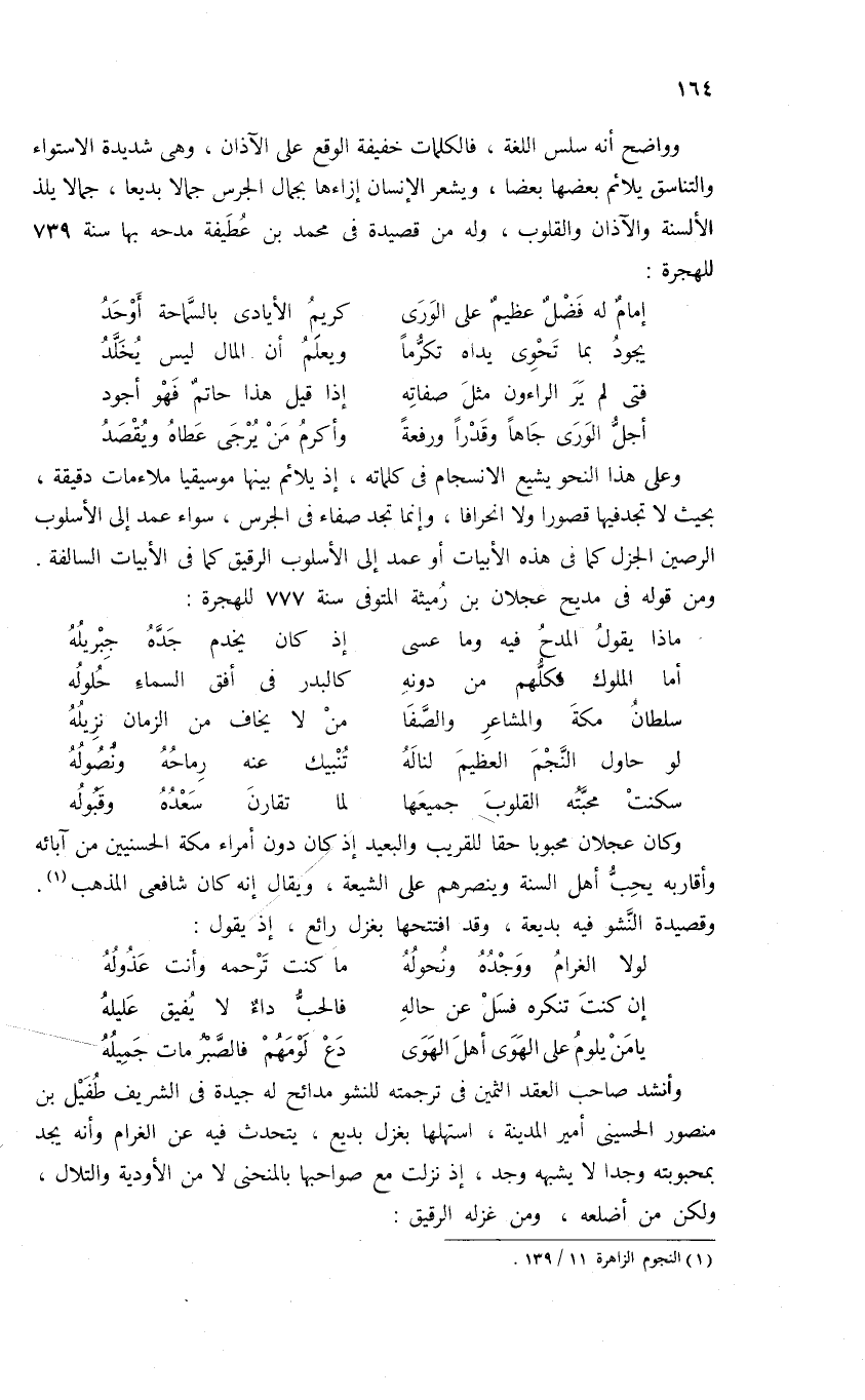 ومن قوله فى مديح عجلان بن رميثة المتوفى سنة 777 للهجرة: