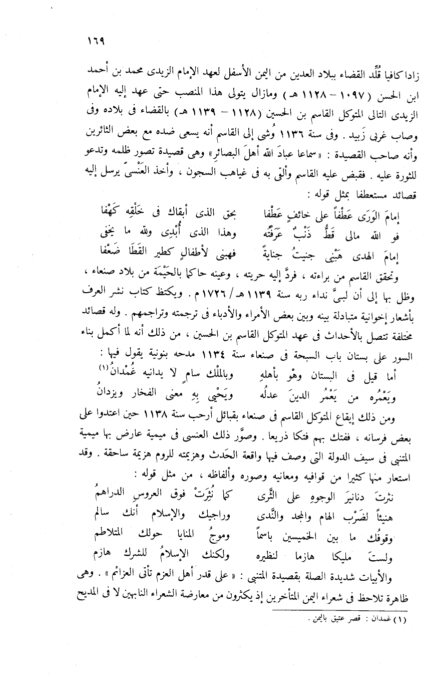 والأبيات شديدة الصلة بقصيدة المتنبى: «على قدر أهل العزم تأتى العزائم». وهى ظاهرة تلاحظ فى شعراء اليمن المتأخرين إذ يكثرون من معارضة الشعراء النابهين لا فى المديح