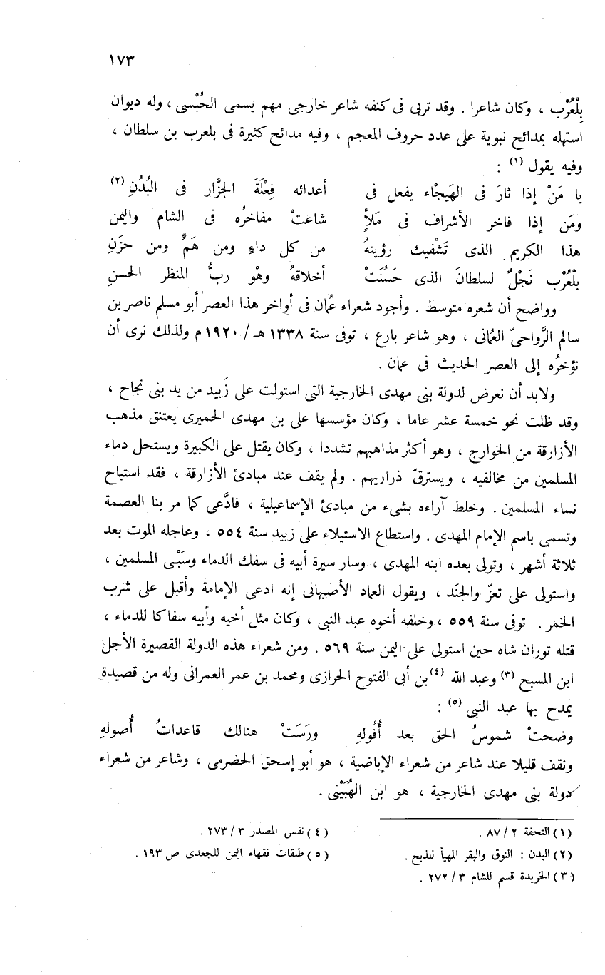 وواضح أن شعره متوسط. وأجود شعراء عمان فى أواخر هذا العصر أبو مسلم ناصر بن سالم الرّواحىّ العمانى. وهو شاعر بارع، توفى سنة 1338 هـ/1920 م ولذلك نرى أن نؤخره إلى العصر الحديث فى عمان.
