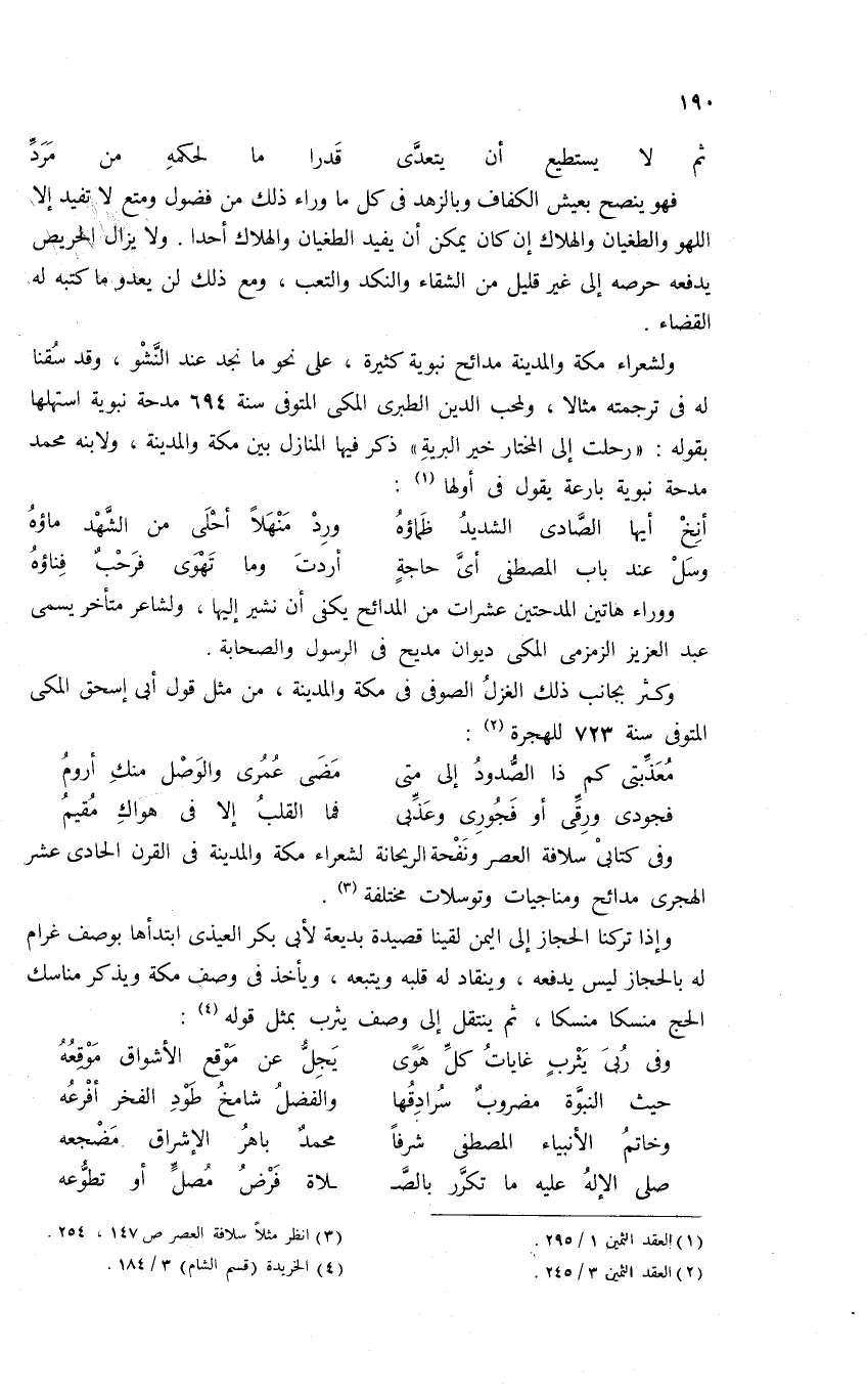 وفى كتابى سلافة العصر ونفحة الريحانة لشعراء مكة والمدينة فى القرن الحادى عشر الهجرى مدائح ومناجيات وتوسلات مختلفة (¬3).