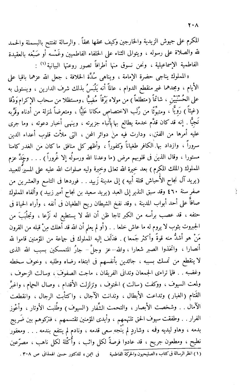 (¬1) انظر الرسالة فى كتاب «الصليحيون والحركة الفاطمية فى اليمن» للدكتور حسين الهمذانى ص 308.