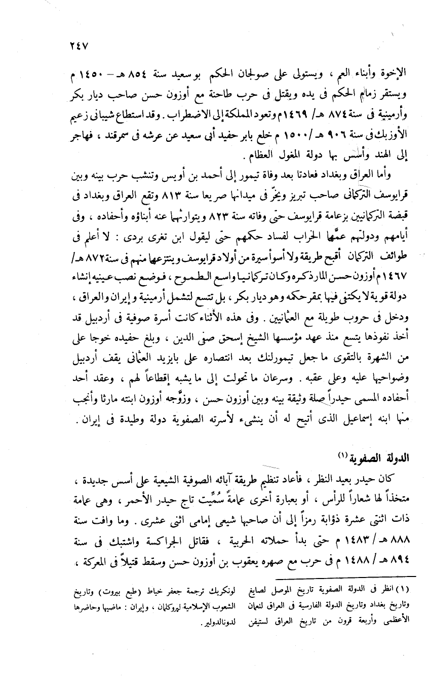 (¬1) انظر فى الدولة الصفوية تاريخ الموصل لصايغ وتاريخ بغداد وتاريخ الدولة الفارسية فى العراق لنعمان الأعظمى وأربعة قرون من تاريخ العراق لستيفن لونكريك ترجمة جعفر خياط (طبع بيروت) وتاريخ الشعوب الإسلامية لبروكلمان، وإيران: ماضيها وحاضرها لدونالدولير.