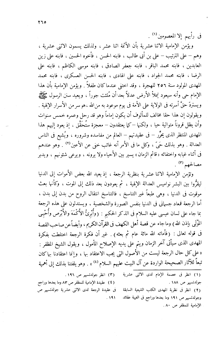 (¬4) عقيدة الإمامية للمظفر ص 83 وما بعدها وراجع فى عقيدة الرجعة لدى الاثنى عشرية جولدتسيهر ص 191.