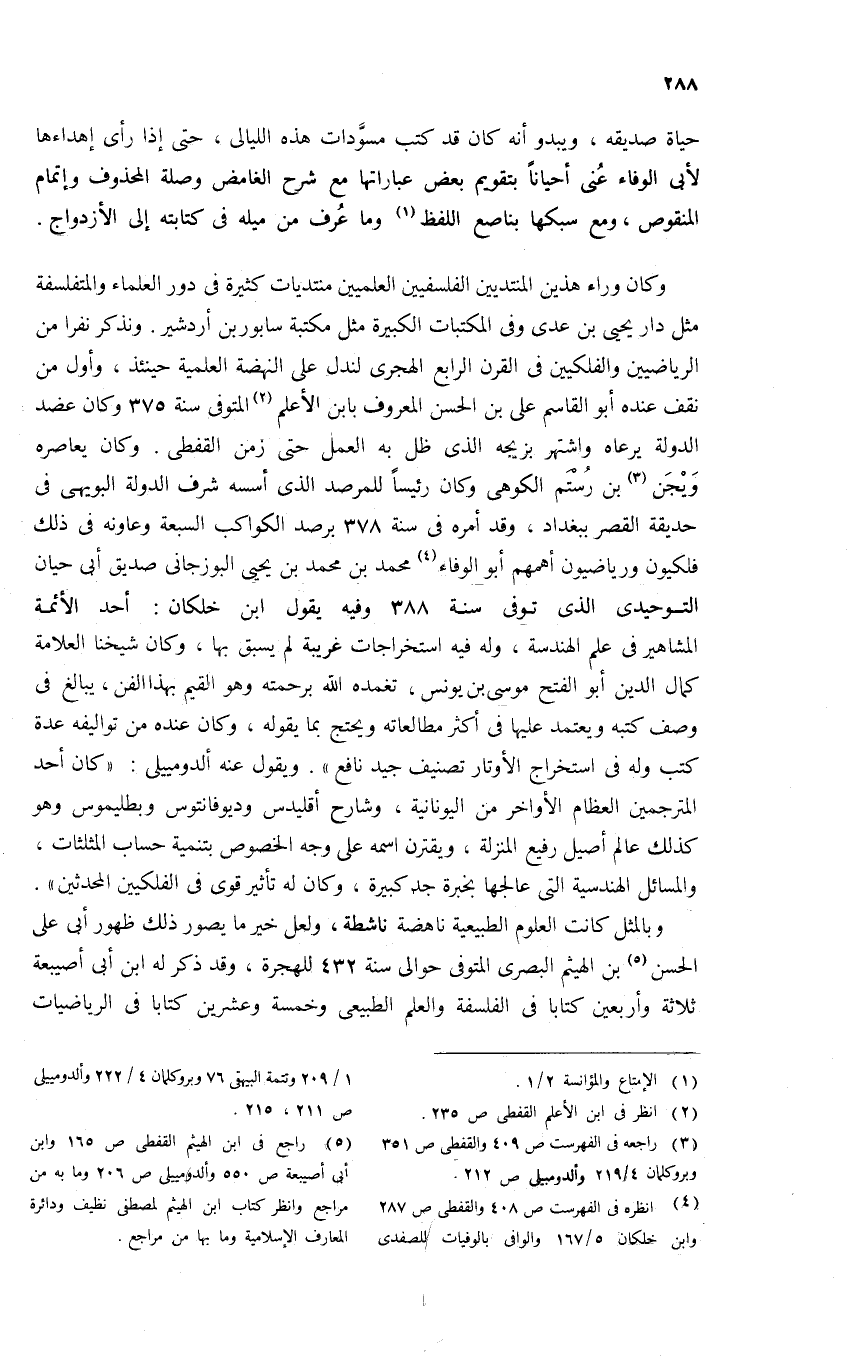 (¬5) راجع فى ابن الهيثم القفطى ص 165 وابن أبى أصيبعة ص 550 وألدومييلى ص 206 وما به من مراجع وانظر كتاب ابن الهيثم لمصطفى نظيف ودائرة المعارف الإسلامية وما بها من مراجع.
