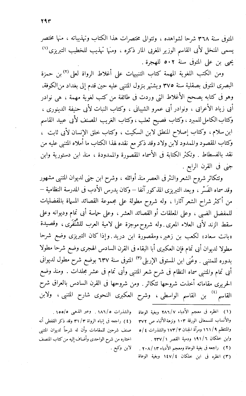 (¬4) راجعه فى إنباه الرواة 3/ 31 وقد ذكر القفطى أنه صنف شرحين للمقامات وأن له شرحا لديوان المتنبى اختاره من شرح الواحدى وأضاف إليه من كتاب المنصف لابن وكيع.