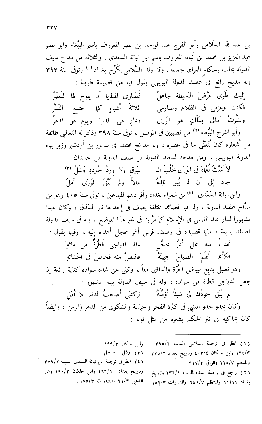 (¬1) انظر فى ترجمة السلامى اليتيمة 2/ 395. 3/ 124 وابن خلكان 4/ 403 وتاريخ بغداد 2/ 335 والمنتظم 7/ 225 والوافى 3/ 317