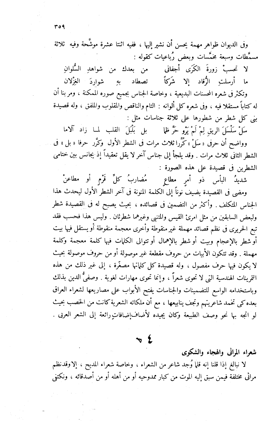 لا نبالغ إذا قلنا إنه قلما وجد شاعر من الشعراء، وخاصة شعراء المديح، إلا وقد نظم مراثى مختلفة فيمن سبق إليه الموت من كبار ممدوحيه أو من أهله أو من أصدقائه، ونكتفى