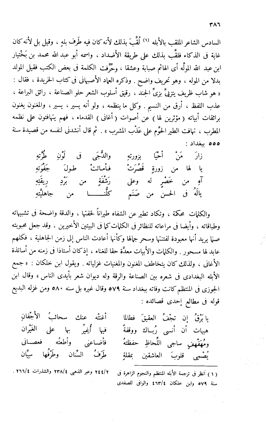 (¬1) انظر فى ترجمة الأبله المنتظم والنجوم الزاهرة فى سنة 579 وابن خلكان 4/ 463 والوافى للصفدى 2/ 244 وعبر الذهبى 4/ 238 والشذرات 4/ 266.