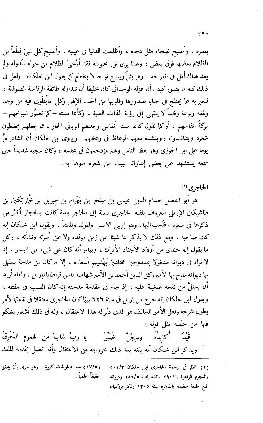 (¬1) انظر فى ترجمة الحاجرى ابن خلكان 3/ 501 والنجوم الزاهرة 6/ 290 والشذرات 5/ 156 وديوانه طبع طبعة سقيمة بالقاهرة سنة 1305 وذكر بروكلمان (5/ 17) منه مخطوطات كثيرة، وهو حرى بأن يحقق تحقيقا علميا.