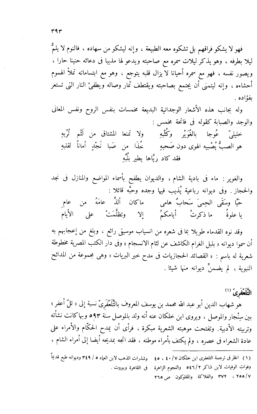 (¬1) انظر فى ترجمة التلعفرى ابن خلكان 7/ 40، 45 وفوات الوفيات لابن شاكر 2/ 546 والنجوم الزاهرة 7/ 255، 372 والفلاكة والمفلوكون ص 265 وشذرات الذهب لابن العماد 5/ 349 وديوانه طبع قديما فى القاهرة وبيروت.