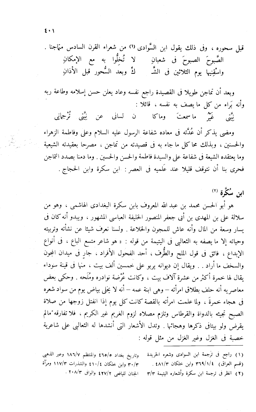 (¬2) انظر فى ترجمة ابن سكرة وأشعاره اليتيمة 3/ 3 وتاريخ بغداد 5/ 465 والمنتظم 7/ 186 وعبر الذهبى 3/ 30 وابن خلكان 4/ 410 والشذرات 3/ 117 ومرآة الجنان لليافعى 2/ 427 والوافى 3/ 208.