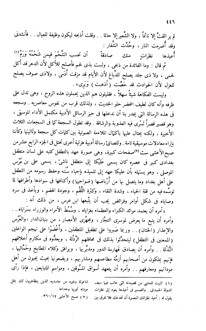لم ير القتّ إلا نائما، ولا الشّعير إلا حالما. . وقلت أذبحه ليكون وظيفة للعيال. . فأنشدنى وقد أضرمت النار، وحدّت الشّفار: