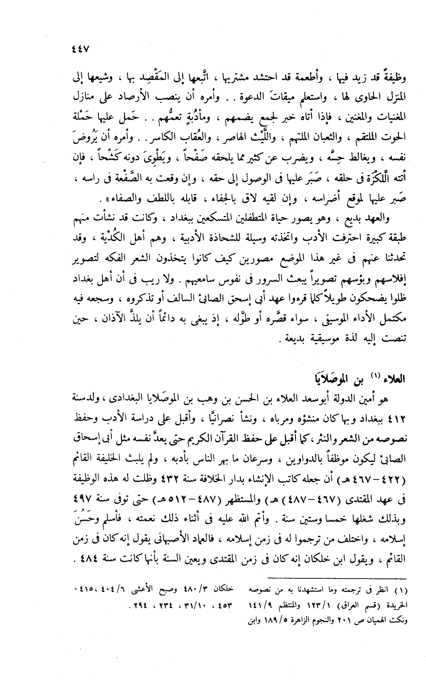 (¬1) انظر فى ترجمته وما استشهدنا به من نصوصه الخريدة (قسم العراق) 1/ 123 والمنتظم 9/ 141 ونكت الهميان ص 201 والنجوم الزاهرة 5/ 189 وابن خلكان 3/ 480 وصبح الأعشى 6/ 404، 415، 453، 10/ 31، 234، 294.