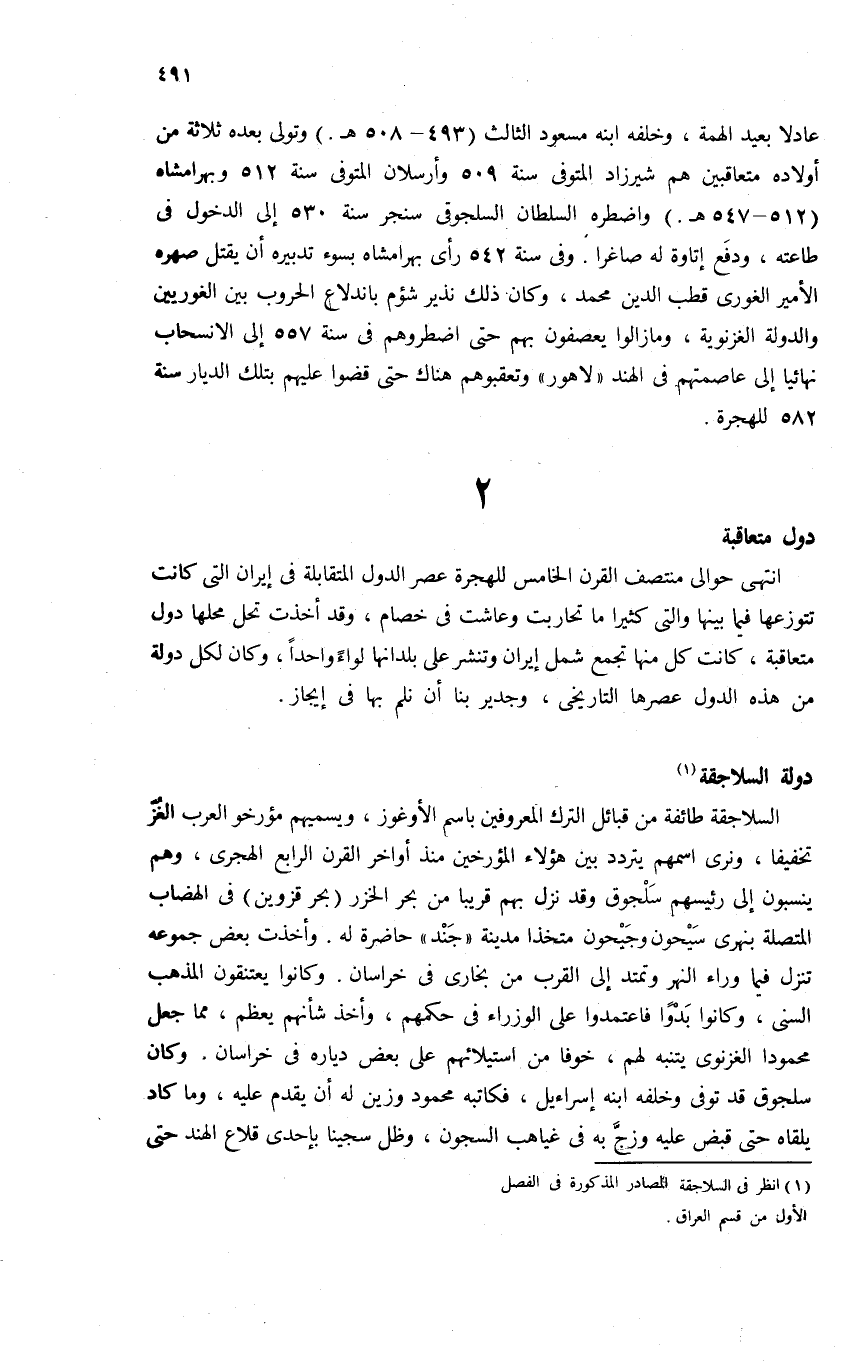 (¬1) انظر فى السلاجقة المصادر المذكورة فى الفصل الأول من قسم العراق.